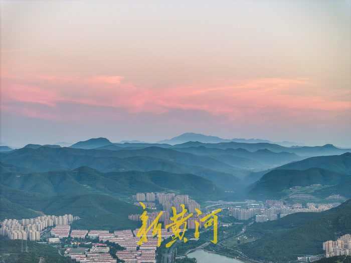空中俯瞰南部山区,群山连绵,层峦叠嶂,青山绿水间薄雾笼罩,与现代化的城市建筑连接在一起,似一幅展开的现实版的“千里江山图”画卷。