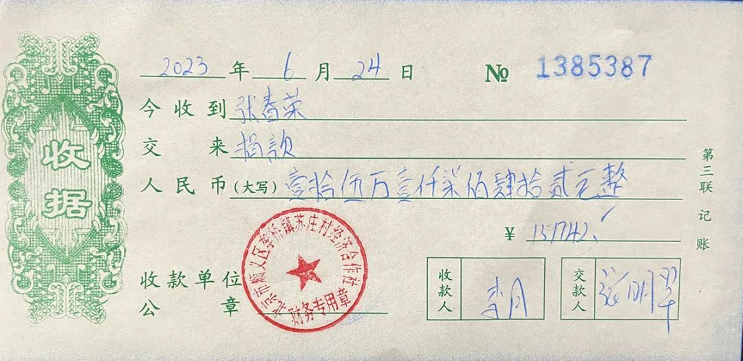 苏庄村党支部书记赵新雷说:“张春荣老人将抚恤金全部捐献给村集体,用于村庄建设,我们对他表示感谢和尊敬。”