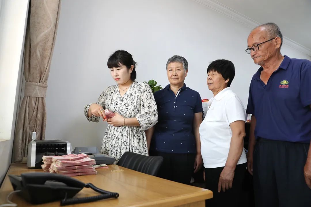 苏庄村财务人员清点款项。