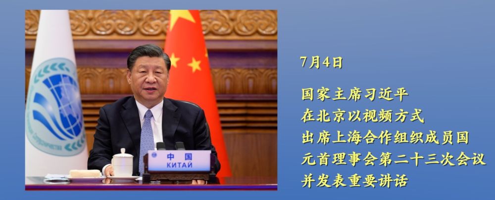 国家主席习近平7月4日下午在北京以视频方式出席上海合作组织成员国元首理事会第二十三次会议并发表重要讲话。
