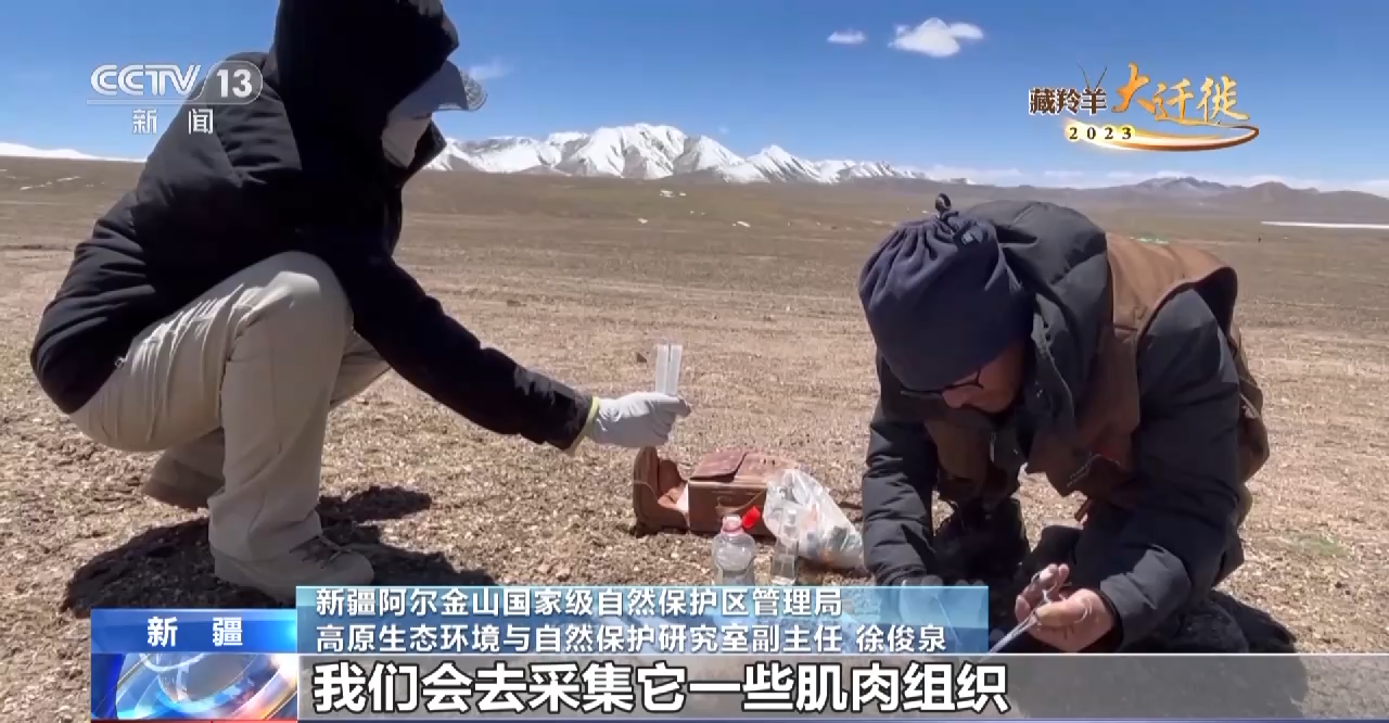 新疆阿尔金山国家级自然保护区管理局高原生态环境与自然保护研究室副主任 徐俊泉:我们在对一些夭折的藏羚羊,我们会去采集它的一些肌肉组织,我们通过这样的一些肌肉组织,重点做它的遗传物质的遗传分析,最后和羌塘、可可西里的藏羚羊样本都会放在一起做对比,这样通过遗传信息可以进一步对比,咱们各个区域的藏羚羊到底有哪些多样性和有哪些差异性。