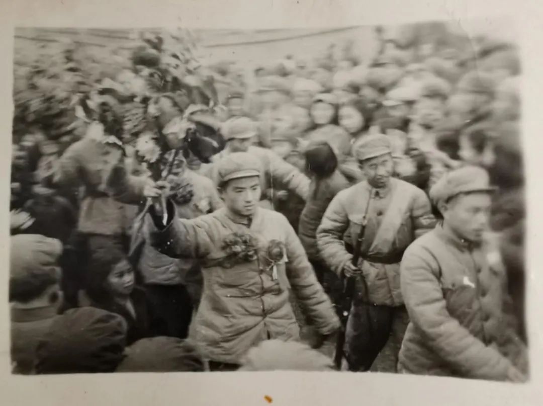 志愿军归国代表团代表王仁山(中)。