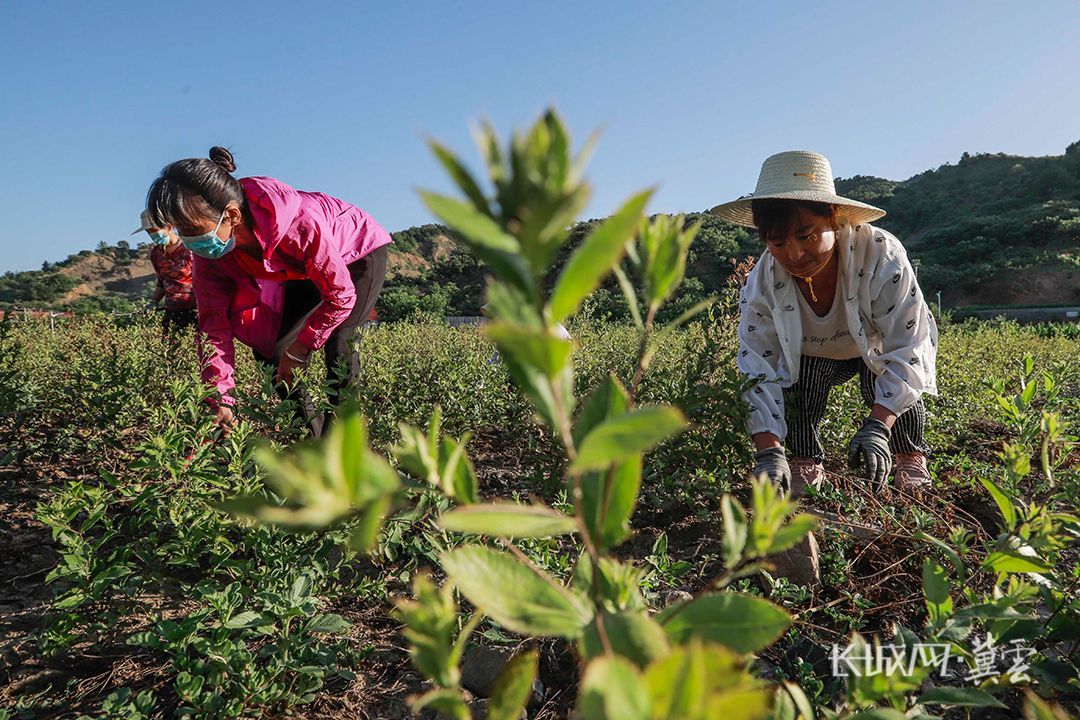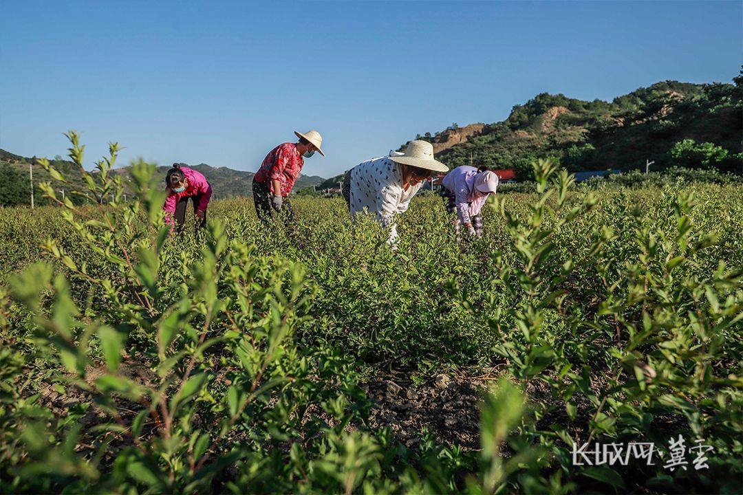 7月6日,河北省迁西县三屯营镇高家庄村农民在苍术药材种植基地劳作。刘满仓 摄