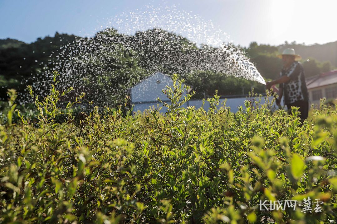 7月6日,河北省迁西县三屯营镇高家庄村农民在苍术药材种植基地浇水。刘满仓 摄
