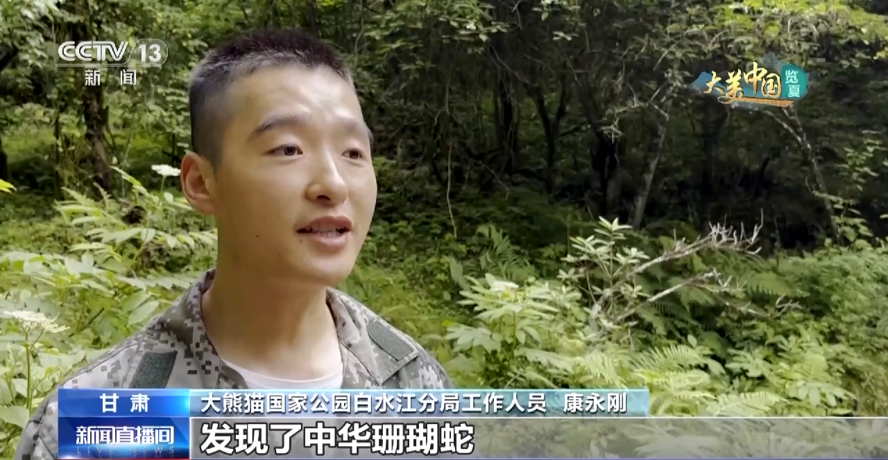 大熊猫国家公园白水江分局工作人员 康永刚:发现了中华珊瑚蛇在我们白水江园区内的新分布。这意味着我们的生态环境持续向好,野生动物种类不断增加,也是保护大熊猫“伞护”效应的一个重要体现。