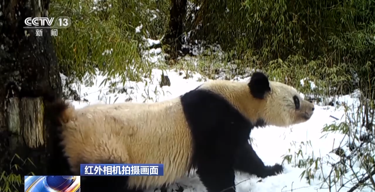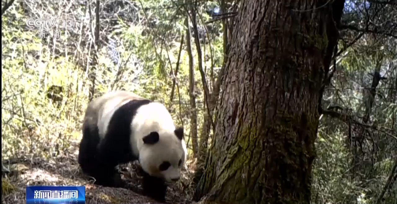 大熊猫国家公园白水江分局白马河保护站副站长 班文琴:快看!拍到大熊猫了。这个大熊猫看着挺健壮的,憨态可掬,看它悠闲不悠闲。