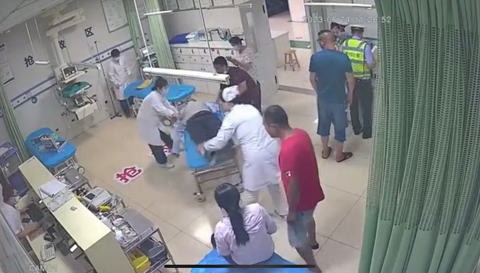 在危急时刻,医生做了怎样的急救措施,挽回了老人的生命?事发当天,仅用5秒冲出诊室的呼吸与危重症医学科副主任医师李浩劼,向新黄河记者回忆了事发时惊险一幕。