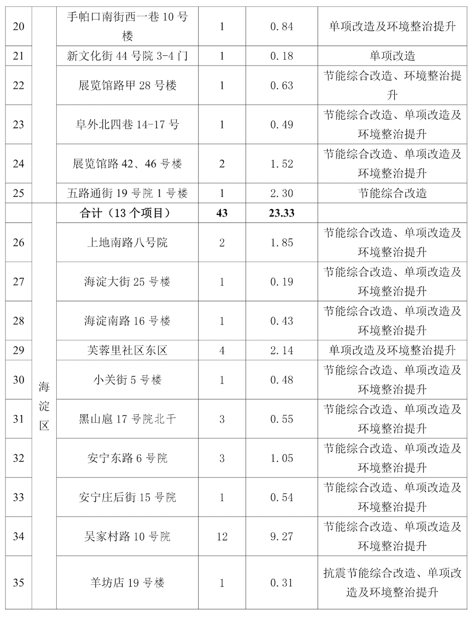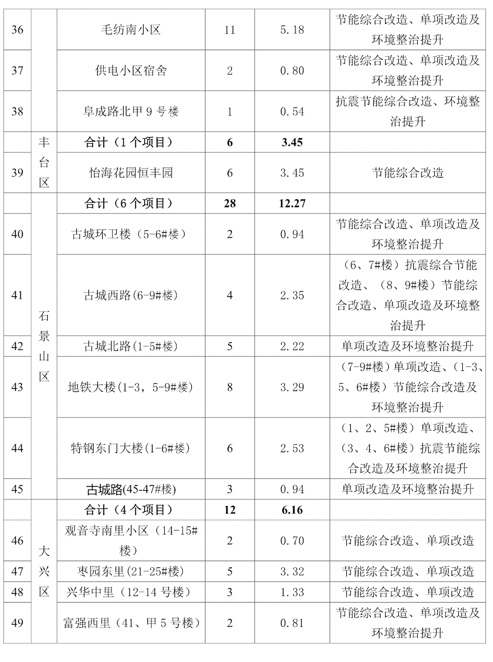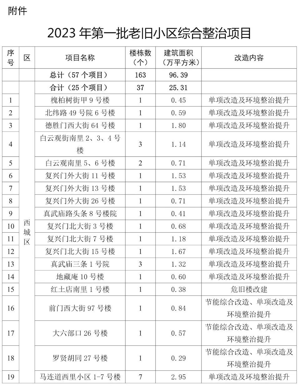石景山区纳入今年首批综合整治名单的老旧小区相对较多,其中,古城环卫楼5号楼和6号楼、古城西路6至9号楼、古城北路1至5号楼、特钢东门大楼1至6号楼、古城路45至47号楼等,都是建成年代已久、居民改造需求迫切的老楼。