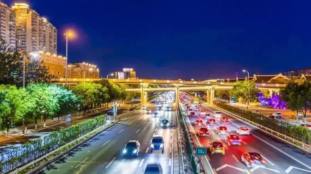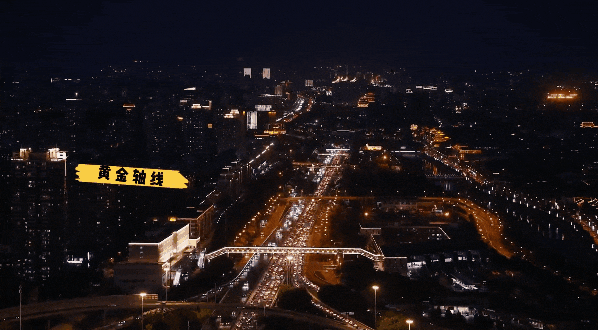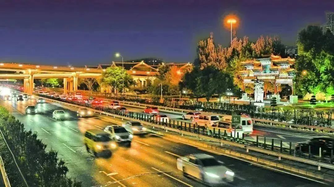夜幕低垂,驾车从东四环由北向南方向过匝道汇入京通快速路主路,只见一条金色的灯带如皎月飞光。一路往东经四惠桥、运河壹号高架桥至八里桥段,两侧桥梁、楼宇、树木、草地各色灯光交相辉映,让夜晚变得多姿多彩。