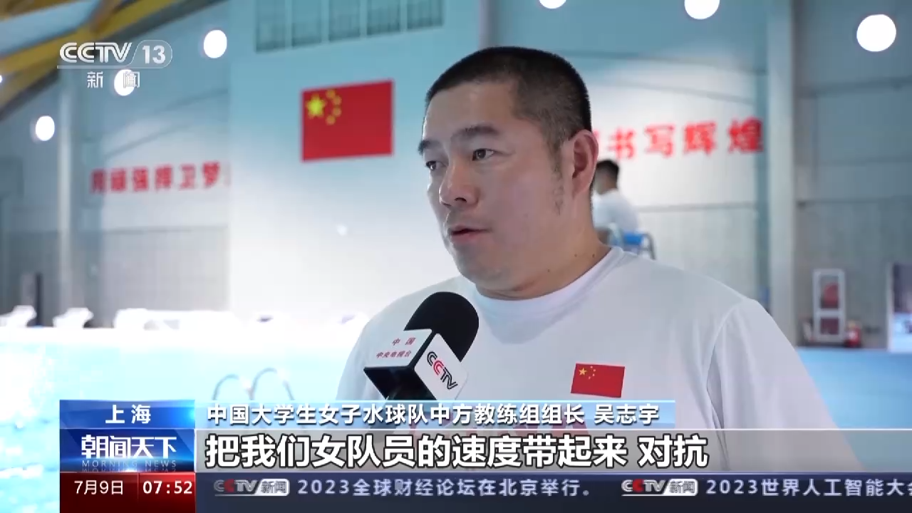 中国大学生女子水球队中方教练组组长 吴志宇:这两天跟上海的男子青年队打一个热身比赛,我们希望让男队员在力量、速度上面把我们女队员的速度带起来对抗。