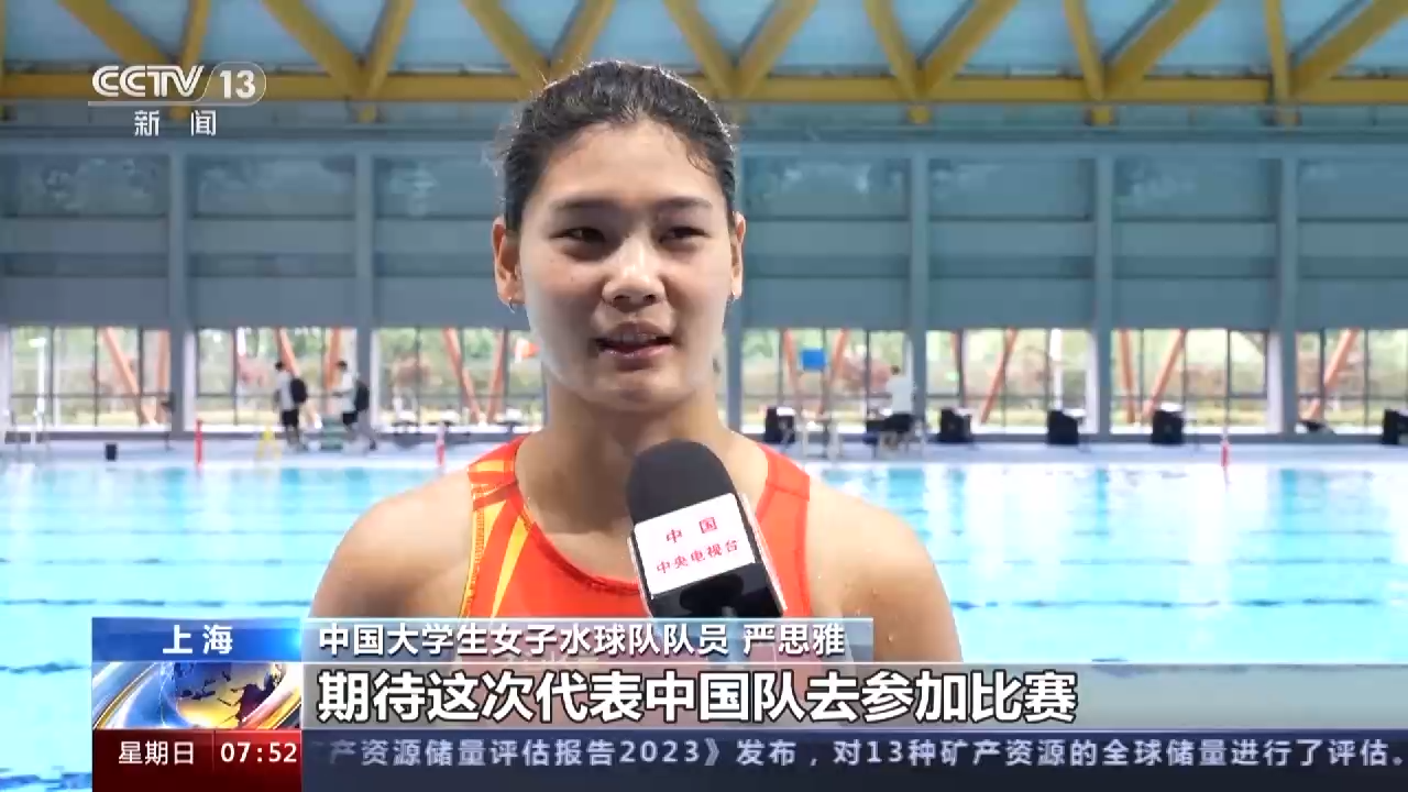 中国大学生女子水球队队员 严思雅:紧张更多一点,也很期待吧,期待这次代表中国队去参加比赛,而且是在我们中国的这个地方,更好地拼出好成绩吧。