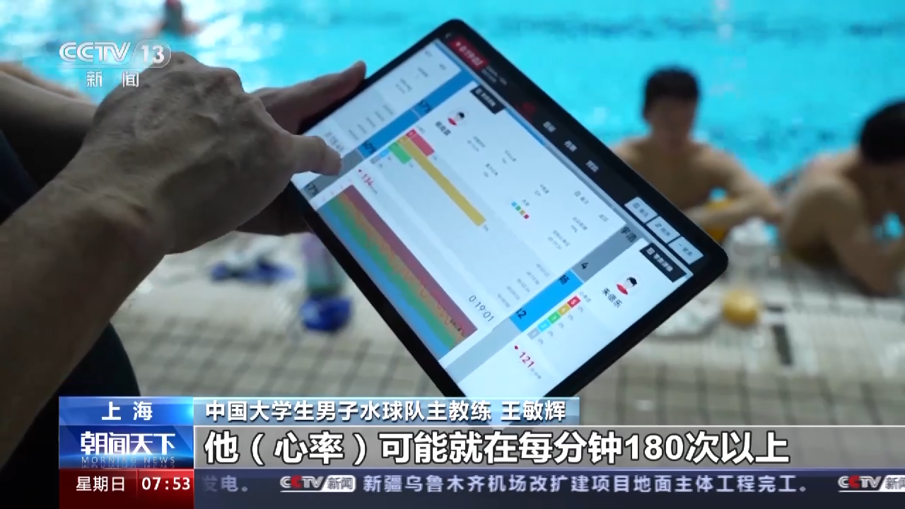 中国大学生男子水球队主教练 王敏辉:这个就很直观,像这种红的,他心率可能就在每分钟180次以上,甚至达到每分钟190次,黄的也是心率在每分钟160、170次以上。