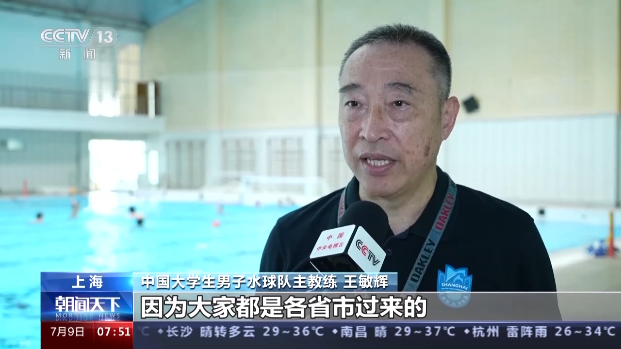 中国大学生男子水球队主教练 王敏辉:训练情况来讲,比较正常。因为大家都是各省市过来的,主要是练一些技战术的配合。