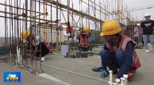 在鼓楼西区定向安置房项目施工现场,工人们正在加紧施工。该项目用于安置鼓楼街道康复西巷回迁居民,总用地面积10870.138平方米,总建筑规模27544.28平方米,共建设2栋8层的住宅楼,建成后将提供128套安置房,配套建设社区用房等。