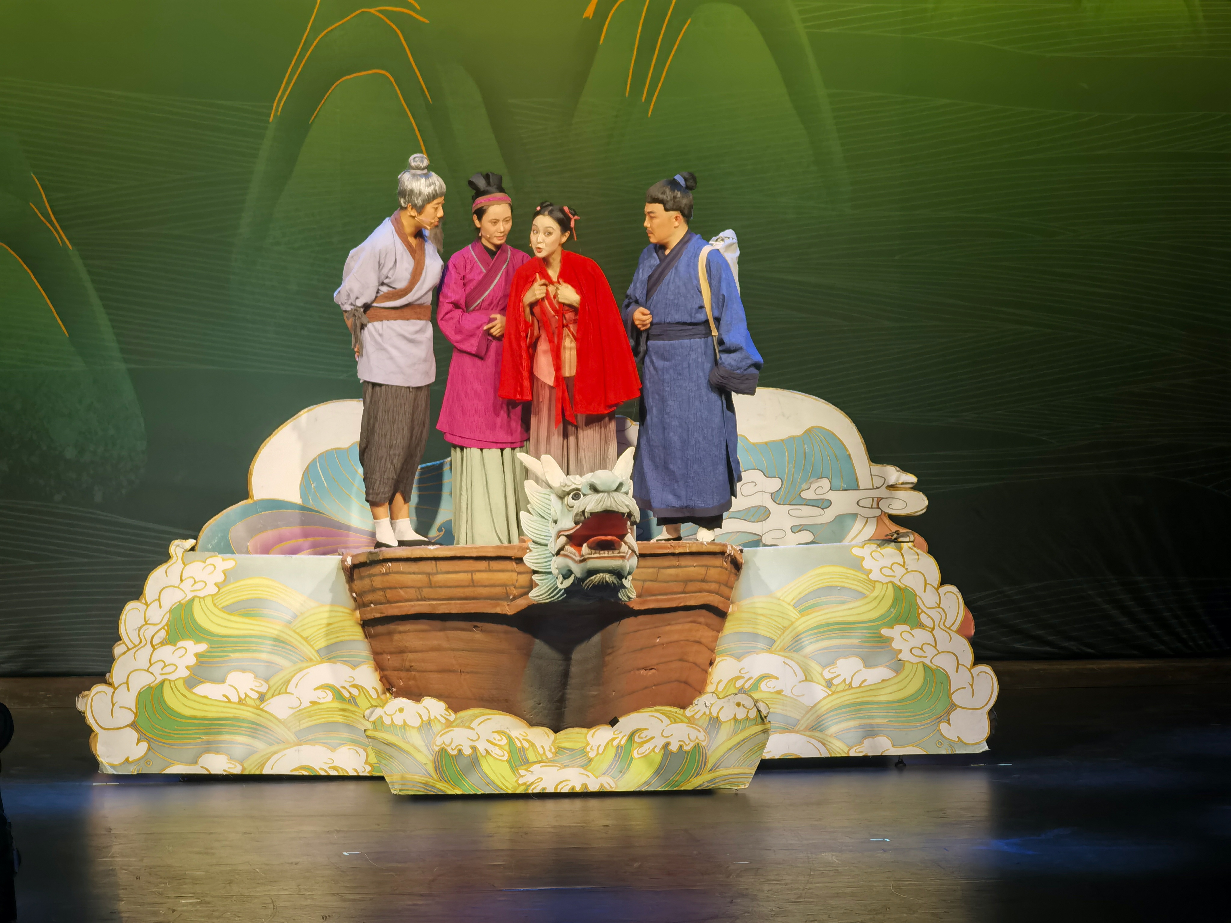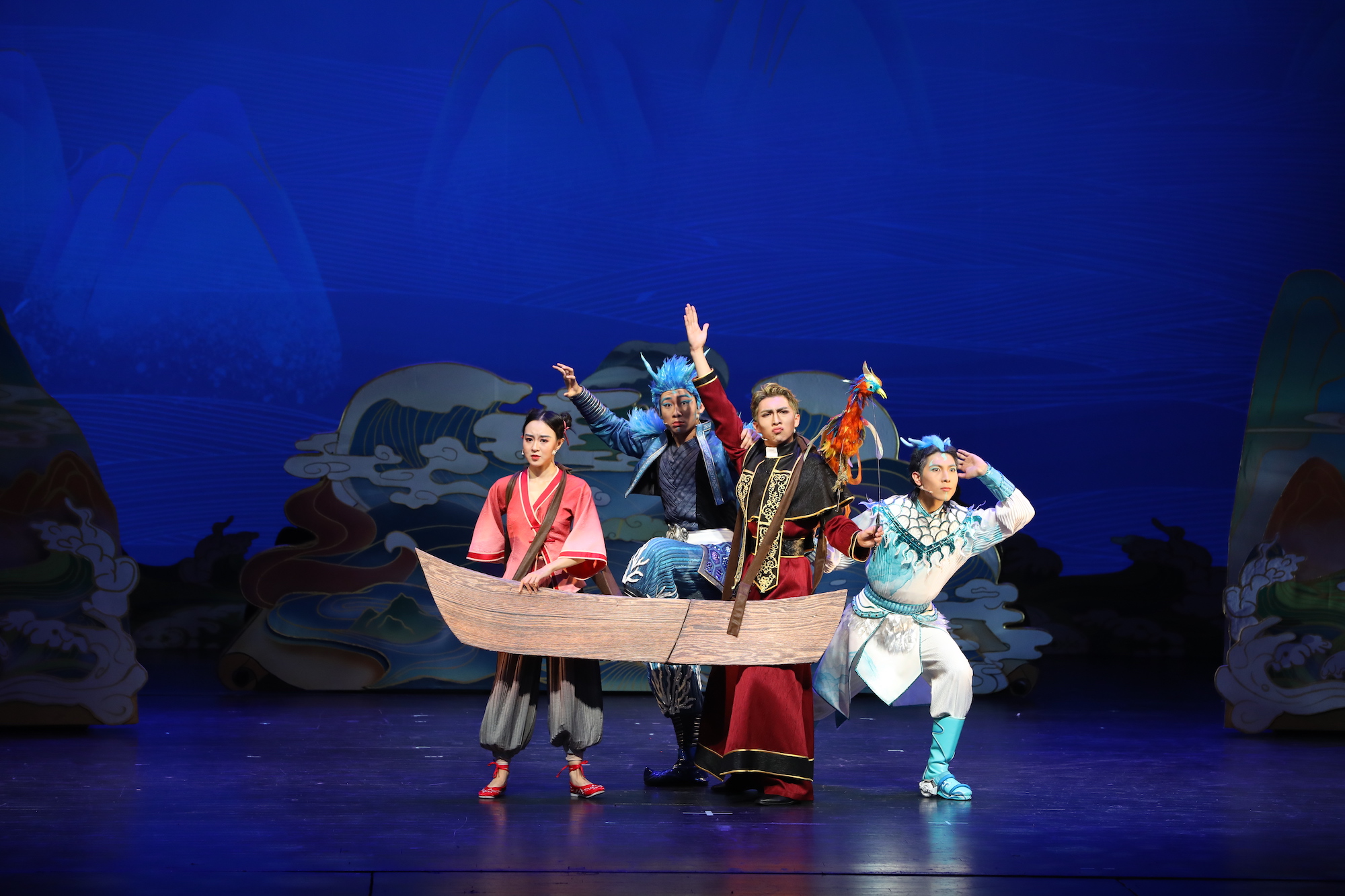 该剧由北京京演文化艺术发展有限公司出品,北京市曲剧团合作演出。自2020年首演以来,已在北京城乡多个剧场演出,至今仍广受欢迎。此番首次登台中华世纪坛,剧中小白龙一角再次成为孩子们的最爱。“他能穿轮滑鞋腾云驾雾”不少孩子散场后还在讨论。对于小观众的评价,该剧导演方毅恒分析,“对传统文化的可视化展现,是大朋友、小朋友都很喜欢这部剧的原因。”小白龙、小麒麟都是《山海经》里的神兽,该剧通过一个个具体舞台形象,将其具象化,让孩子们的想象得到了还原。而小麒麟的戏曲身段,小船头的旱船造型等,又都无声传递营造出国风氛围。