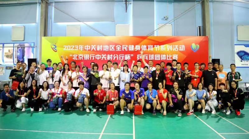 7月9日,2023年“北京银行中关村分行杯”乒乓球团体赛在中关村文化体育中心落幕。此次活动是中关村地区全民健身体育节系列活动之一,旨在丰富中关村地区职工和居民的文体生活,共吸引了26支代表队近200名乒乓球爱好者参与。