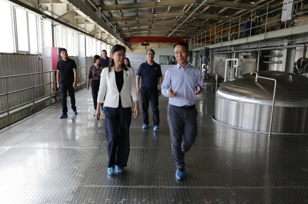 贺亚兰一行实地参观了企业研发实验室、透明发酵罐、生产制造车间,详细了解合成生物学智能生产线运行情况。在座谈会上,吴赴清委员针对企业发展理念、专利技术、产品应用、市场前景等情况进行了逐一介绍,现场展示了部分前沿技术产品。