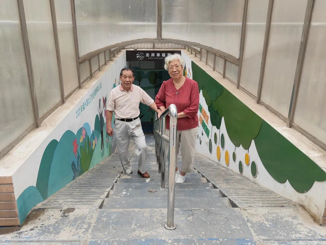 “楼梯边上加装了扶手,这下去‘幸福家’活动,又方便又安全了!”得知地下活动室的楼梯扶手装好了,家住福州馆社区的老人们可高兴了。