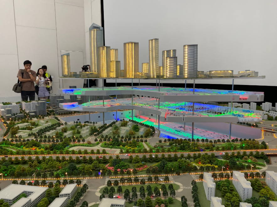 工程指挥部的沙盘显示,枢纽项目的交通功能全都设计在地下,地上部分则是标志性的“京帆”屋盖、城市公园,以及未来将建的办公楼、公寓、酒店、商业设施,仅配建停车位就会高达5300个。按照规划,在枢纽项目上建起来的最宏伟建筑,是一座高260米的高品质写字楼。
