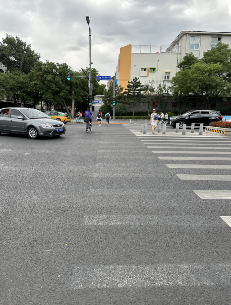 第二个建议——完善交通设施。西黄城根北街与地安门西大街交叉路口,不少行人过马路不走人行道,而是绕开安全岛保护桩区域。学生分析认为,人行道设置不够人性化、安全桩过密。此外,北京四中周边共享单车投放量不足。学生们建议拓宽人行道、调整隔离桩间距,在学校周边适量投放共享单车。
