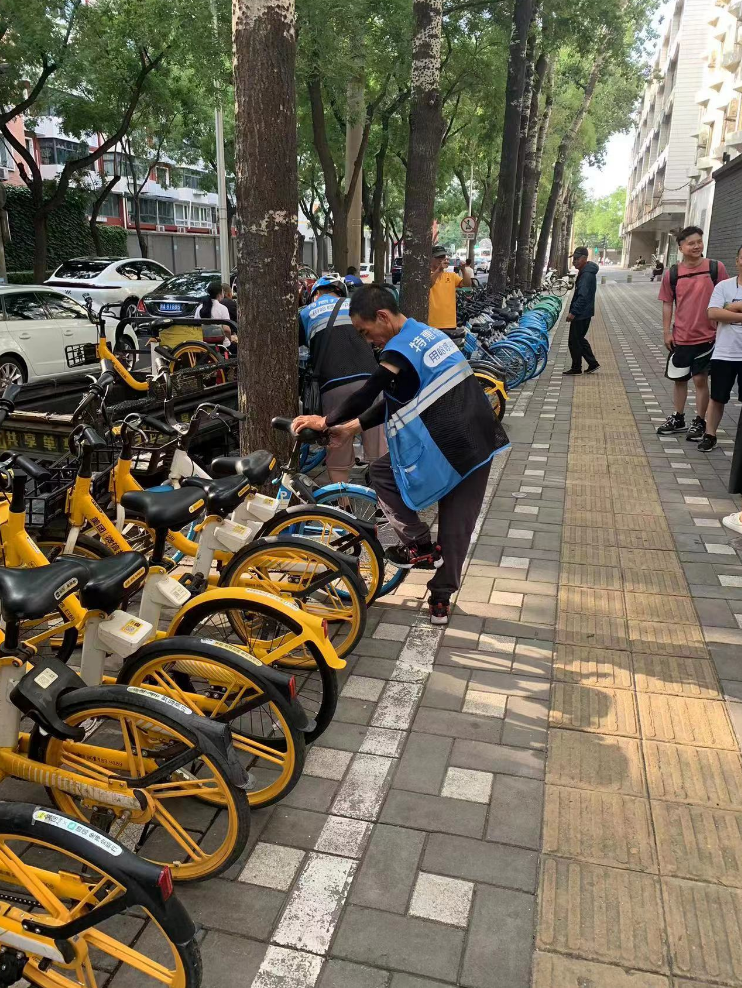 多部门调研当天,即在北京四中西门北侧投放了部分共享单车,后期将根据学生骑乘意愿调研结果,确定共享单车投放数量,并做好日常运维和调度