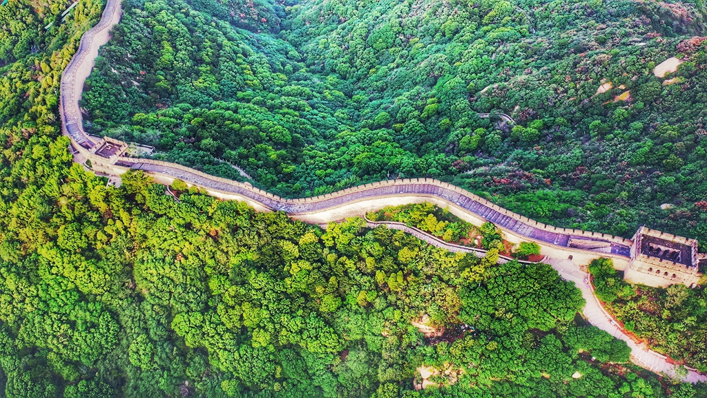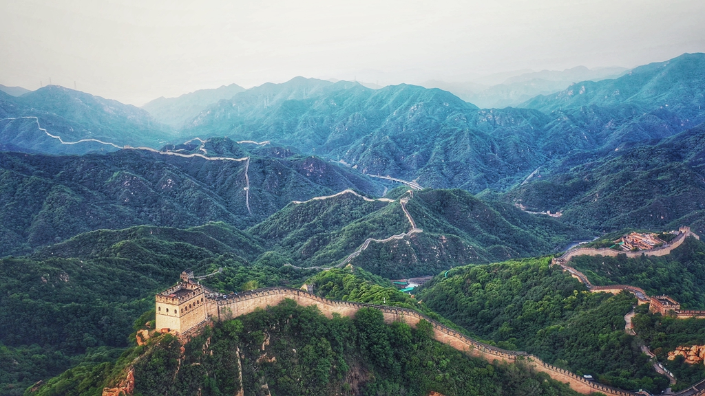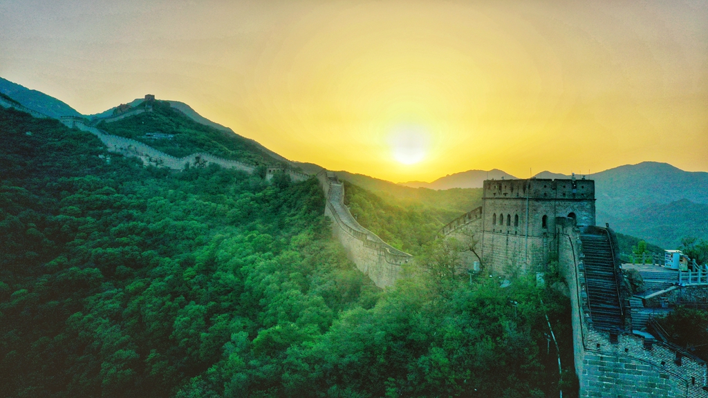 7月14日清晨,延庆迎来晴好天气,朝阳初升,八达岭长城如金龙盘踞。经过连续两天的雨水滋润,长城内外,漫山遍野草木勃发,绿野无边,一幅大美画卷。