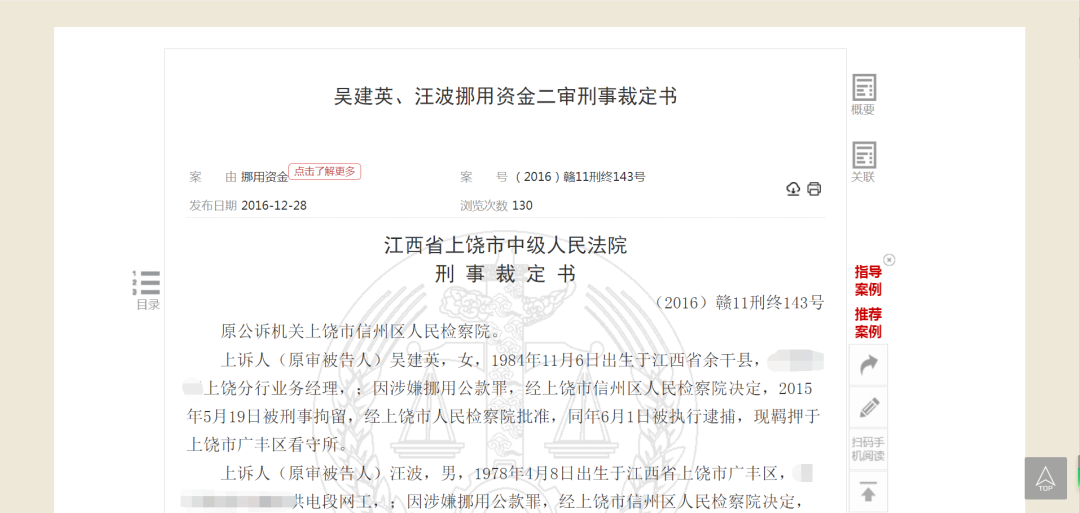 记者在中国裁判文书网查询发现一则2016年底披露的文书显示,吴建英系某银行上饶分行原业务经理,犯挪用资金罪,被判处有期徒刑八年。