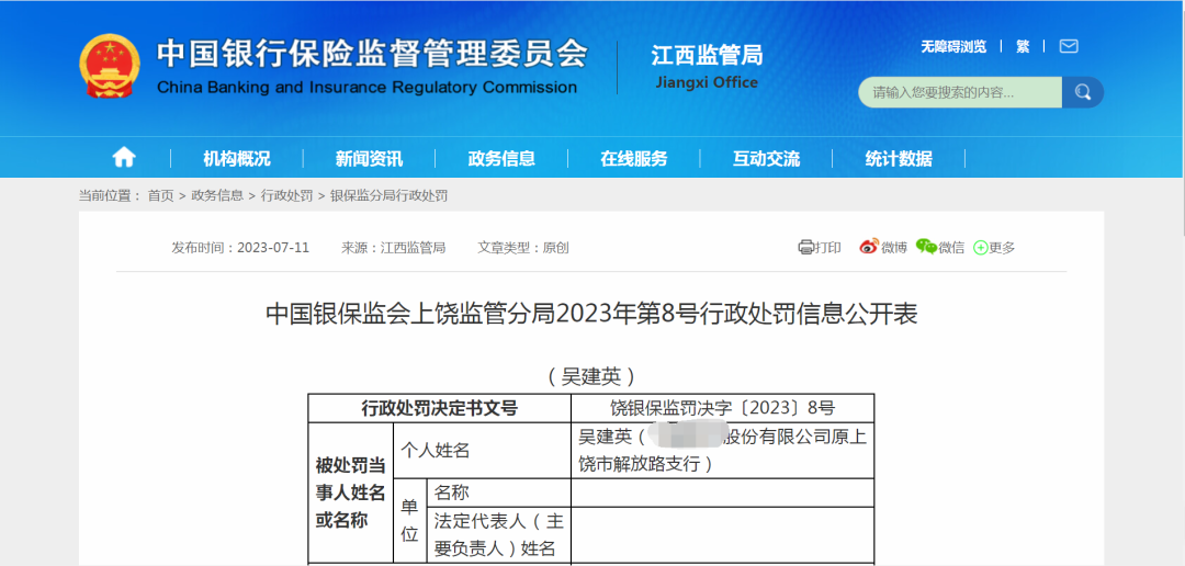 据中国裁判文书网显示,本次被终身禁业的吴建英,女,1984年11月出生于江西省余干县,大学本科文化,曾系上饶分行业务经理。