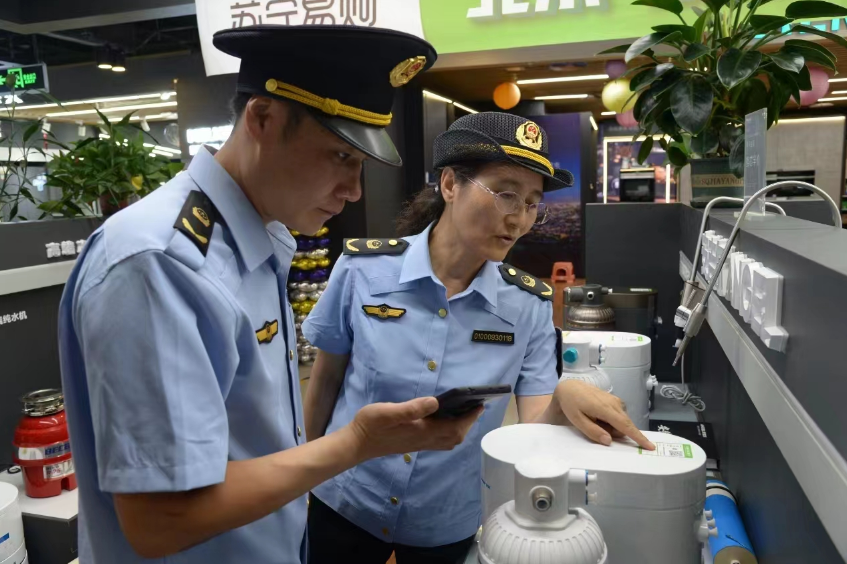 今年7月1日起,水效标识实施过渡期结束,所有在我国生产或销售的所有反渗透或纳滤净水机必须按照《水效标识管理办法》《净水机水效标识实施规则》的规定,备案申领“中国水效标识”并加贴在机身显著位置。日前,通州区市场监管局前往辖区商超和家电卖场,对商家水效、能效标识使用情况进行检查,严防“不标”“虚标”情况发生。