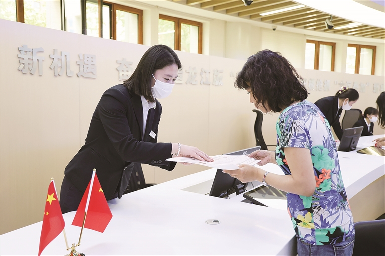 哈尔滨市纪检监察机关将专项整治监督与护航自贸试验区发展监督相结合,督促推动哈尔滨新区行政审批部门提供便捷高效的政务服务。图为近日,哈尔滨新区管理委员会行政审批局优化审批流程,深化“一枚印章管审批”改革,为企业发放营业执照。刘萌 摄