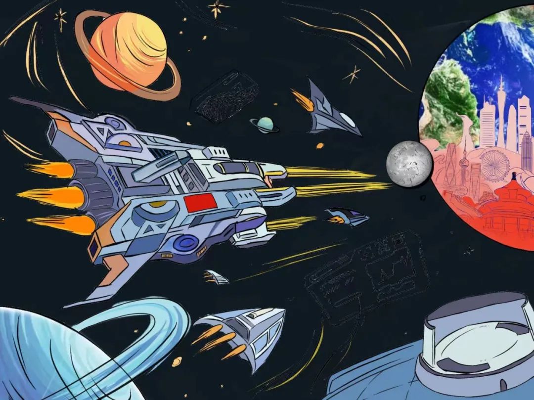 △初一学生刘博玥概念设计稿《流浪到地球》。