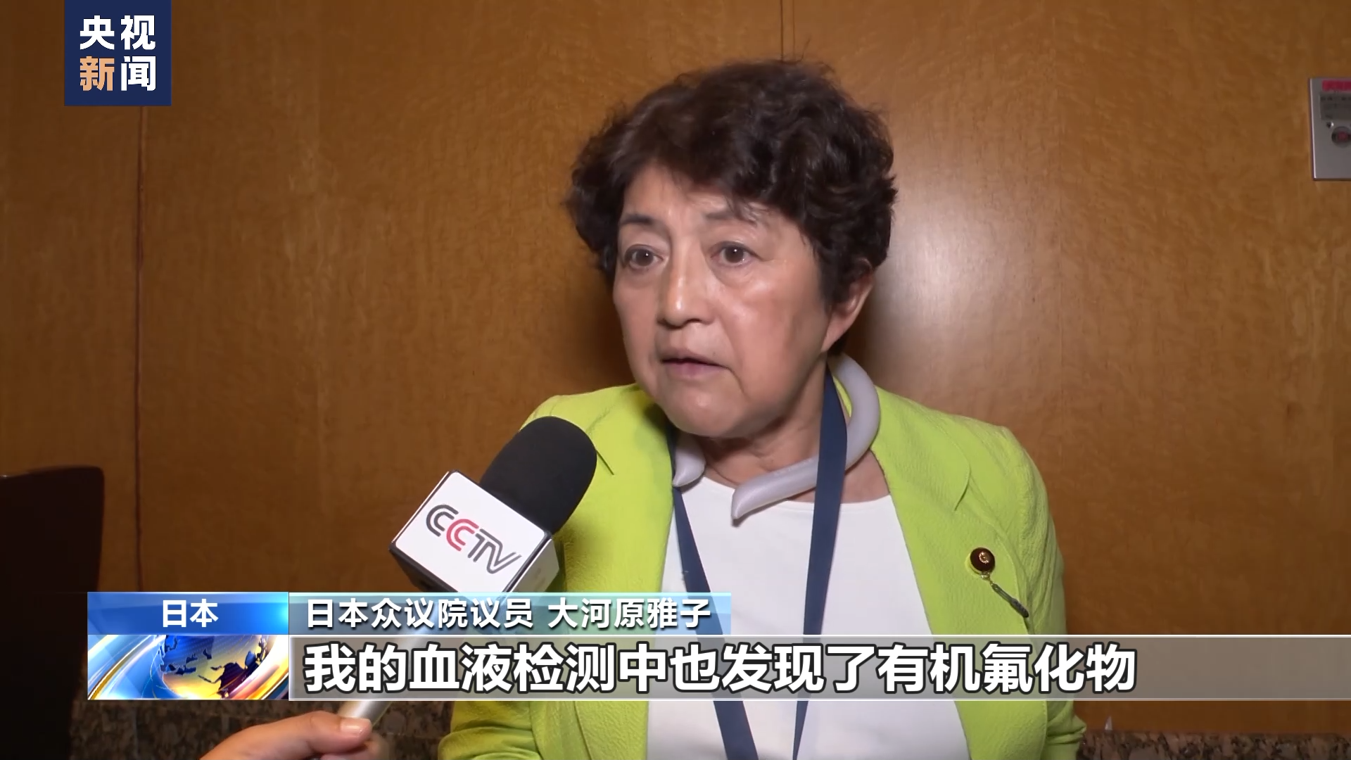 日本众议院议员 大河原雅子:我的血液检测中也发现了有机氟化物,我也意识到了这个问题的严重性。有机氟化物将来还会在体内越积越多,很多民众对此深感不安。