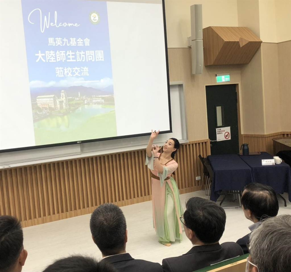 校方还安排曾多次在竞赛中获奖的舞团展演,接着在双方闭门座谈交流会上,北京大学张钰渟也表演古典舞,青年学生以文化交流,互相观摩学习。