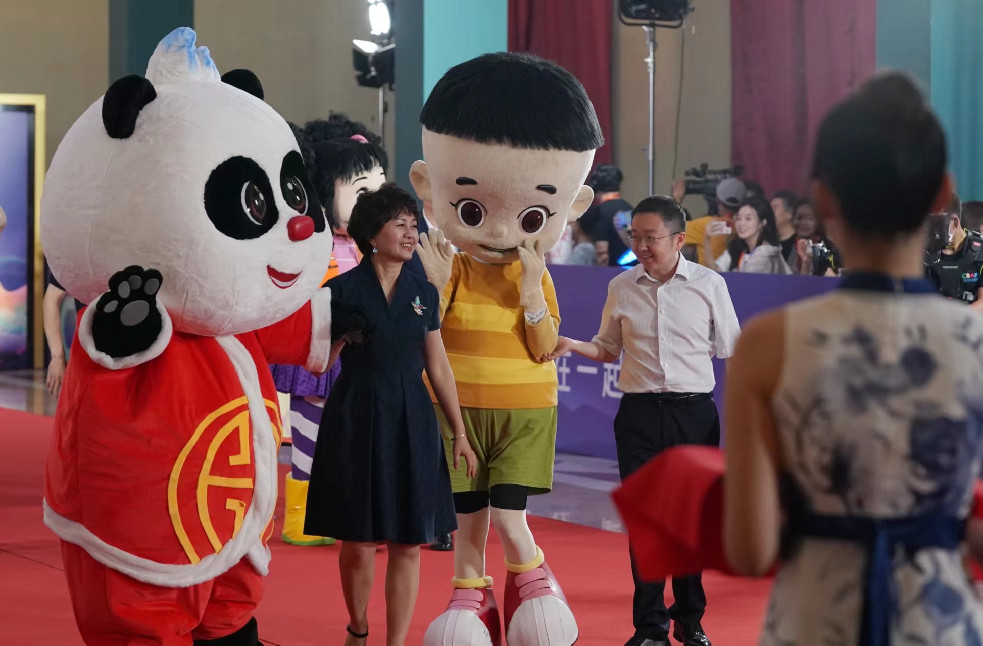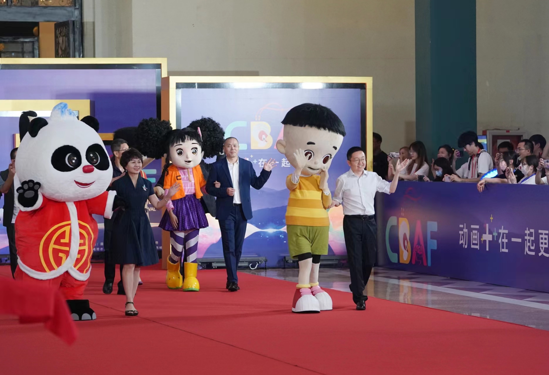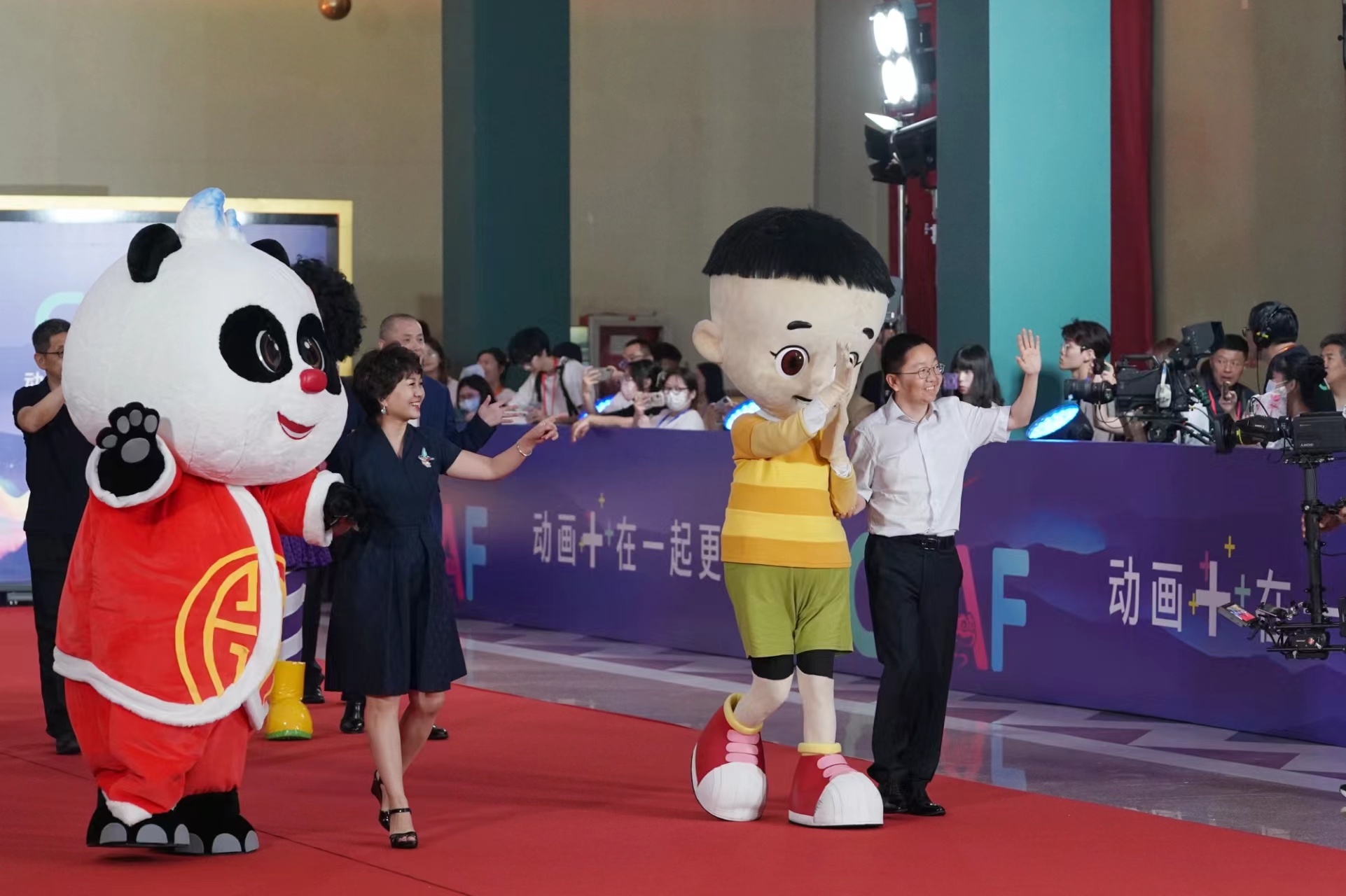 开幕式当天,“葫芦娃”“黑猫警长”“喜羊羊”等经典动画形象在“主题红毯秀”上与观众热情互动。作为中国(北京)动画周首创推出的中国动画行业第一次“动画主题红毯秀”,31组动画史上经典作品、当代热门IP作品等知名动画角色携手幕后创作者惊喜亮相,实现破次元同框。