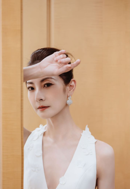 谭元元身着纯白婚纱,佩戴MAISONALT Forest Alt系列River高级珠宝耳环,典雅唯美更显气质卓然。作品以“森林奇境”概念采撷河流为灵感,捕捉水流蜿蜒而下的诗意瞬间,绘就欣欣不息又恬静柔美的自然绮景。甄选重达9.70克拉的玫瑰切割钻石,包括6颗水滴形钻石,配以蛋形白色蓝宝石,秉承MAISONALT一贯的美学与工艺坚持,在立体维度上悉心布局镶嵌,毫厘之间璀璨尽显。交织的线条亦如二人的缘定邂逅与幸福陪伴,流淌熠熠光辉,摇曳轻述彼此美好相遇。