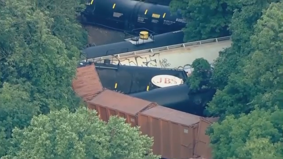 蒙大拿州一列货运火车发生脱轨事故。图源:福克斯新闻网视频报道截图