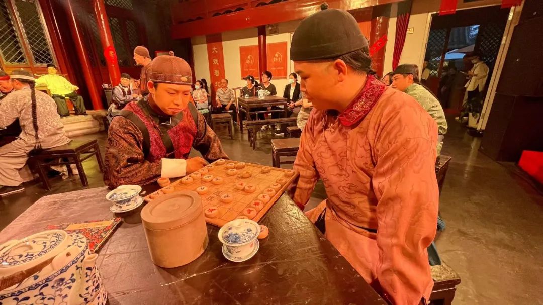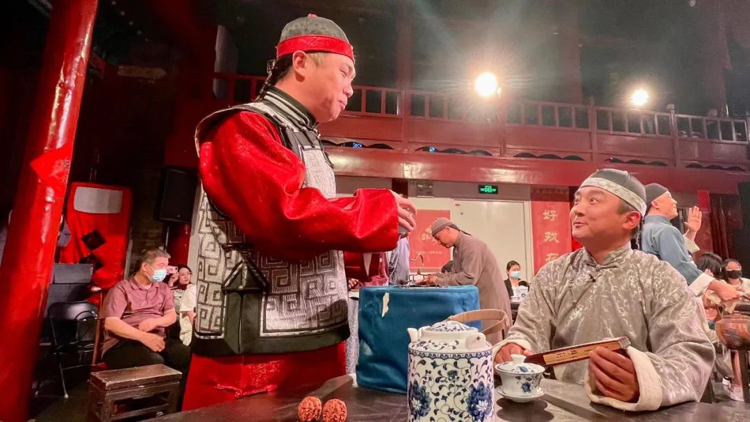 本次,东城区再度携手北京曲剧团,为颜料会馆量身打造沉浸式曲剧《茶馆》,通过经典作品全新演绎,为观众奉上一场精彩的文化大餐。演出打破传统舞台表演形式,以“融戏于景、戏景相融”的全新形式呈现。观众以茶馆“顾客”的身份参与整场表演,与演员一同置身演出场景之中。“参与感太强了!茶馆场景布置让人眼前一亮,仿佛是走进了老北京的茶馆,演员就在我桌边谈天说地,让我感觉一瞬间穿越到那个年代,感受到普通百姓生活的辛酸苦辣。”演出结束后,市民张女士表示。