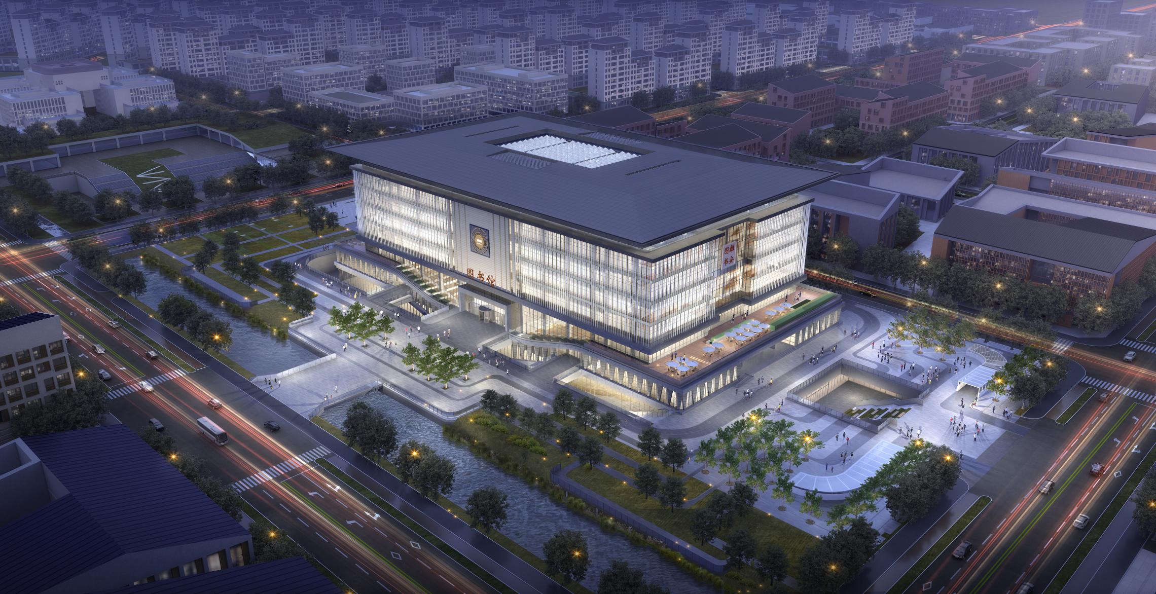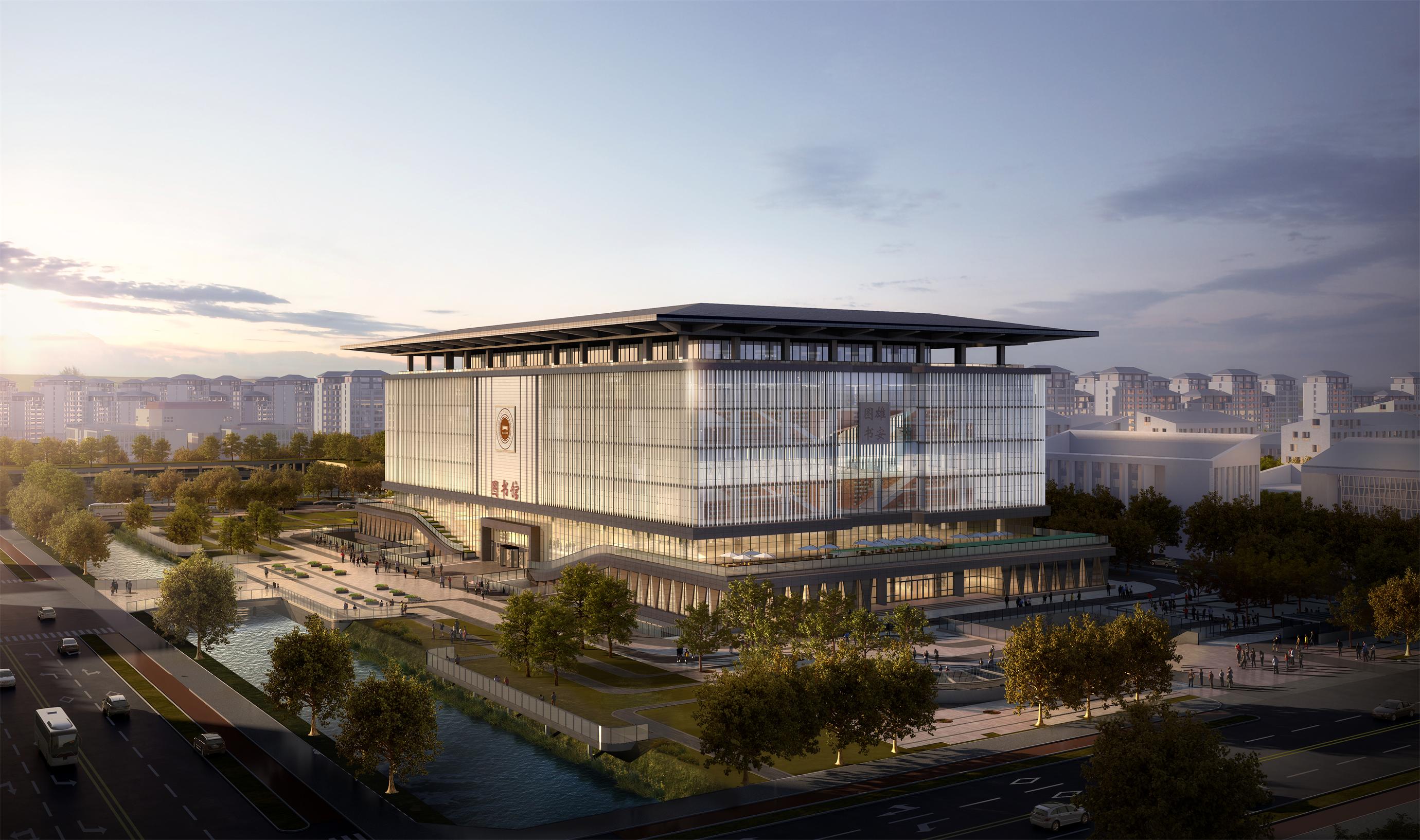 记者注意到,这座图书馆的整体设计秉承了中国传统建筑的三段式构图,立面设计以简牍为意向,折射出中国传统文化的韵味。其建筑外立面遥看犹如万册图书,而建筑底层类似翻开的书页,承托简洁大气的建筑主体。在舒适性方面,其设计的中庭采光系统和可调节外遮阳系统,将营造出舒适自然的室内光环境。据了解,其地上主要功能为图书馆,地下主要功能为机动车库、书库、综合活动空间及设备用房等。