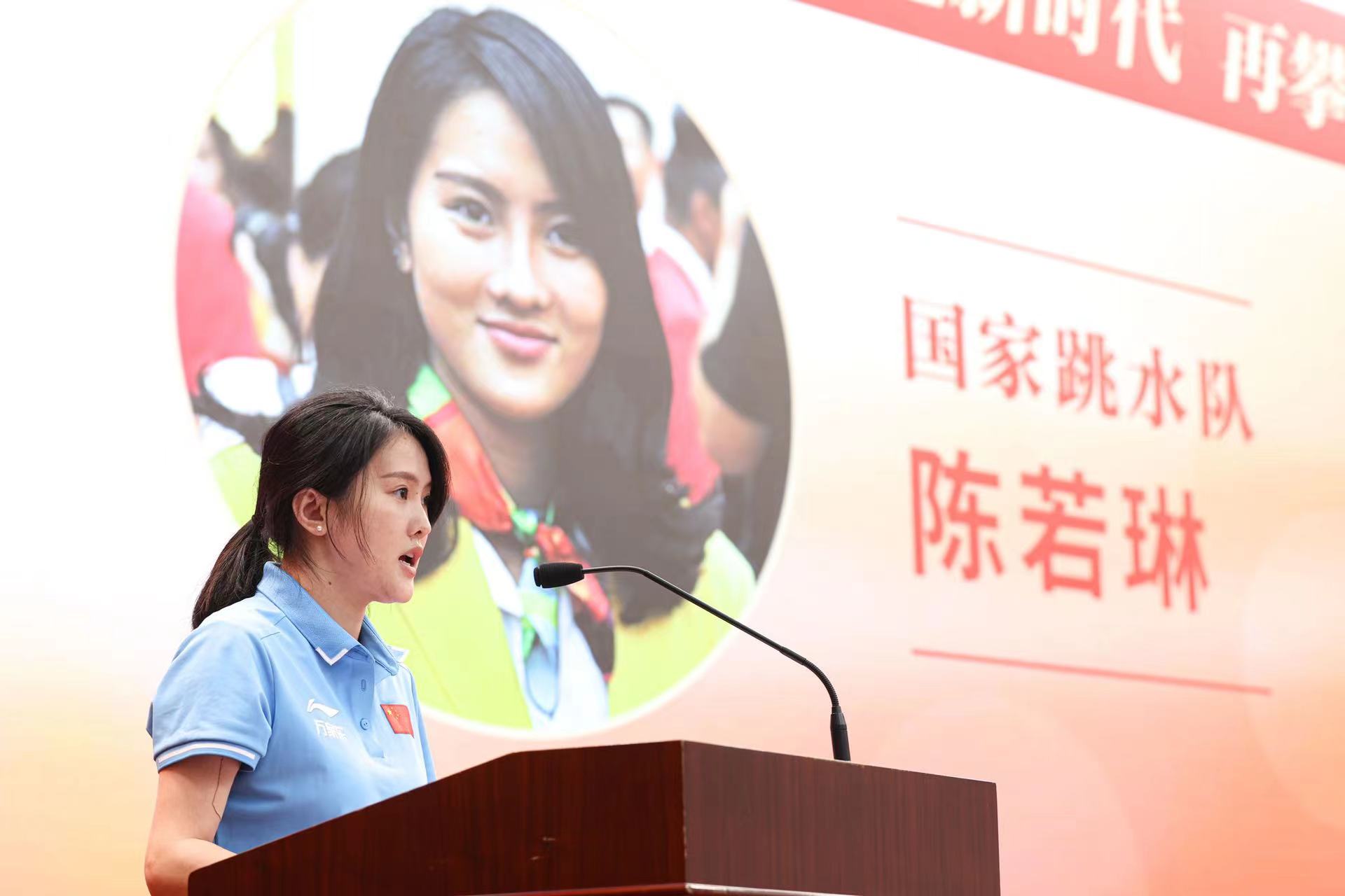 进行主题演讲的运动员、教练员和工作人员有:石智勇、袁心玥、张亮、肖若腾、陈若琳、王梓赛、鲍珊菊、牛笛、郝健羽、杨力维、王嘉男、王皓。在巴黎奥运会倒计时一周年之际,这次主题演讲不仅展现了奋战在奥运备战一线的体育工作者“以为国争光为己任,以为国建功为光荣”的使命担当,更是对攻坚克难决胜巴黎的一次再动员。从初心如磐,连续3个周期逐梦奥运的石智勇,到带着中国红,矢志跳到更远地方的王嘉男;从决心带领中国女排打好巴黎奥运翻身仗的袁心玥,到立志把自行车项目冠军基因传承下去的鲍珊菊;从奋进新时代勇攀新高峰的年轻教练陈若琳,再到传承“为祖国拼命赢取每一分”的乒乓队魂的国乒教练员王皓……中国体育人砥砺奋进、决胜巴黎的勇气与志气传递出令人为之深刻共鸣的精神力量。