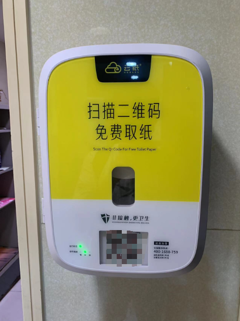 在二层和三层的洗手间外,各有一台智能取纸机,若想免费取纸,必须扫码后关注微信公众号,观看广告页面;若想免去广告直接取纸,则需支付0.99元。记者扫描机器上的二维码后,手机提示关注微信公众号免费取纸;点击关注后,随之而来的又是广告页面;在观看了30秒的广告后,机器终于“吐”出一段卫生纸。