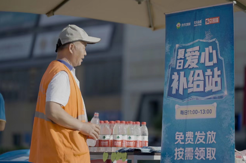 入夏以来,高温天气 “超长待机”。为致敬夏季高温天气下的户外劳动者,京东到家联合京客隆、七鲜等商家和农夫山泉品牌,在北京搭建起数十个夏日爱心补给站,为高温闷热天气下有需要的路人和户外工作提供免费饮用水、清凉贴等物资,驱散夏日的腾腾热气。