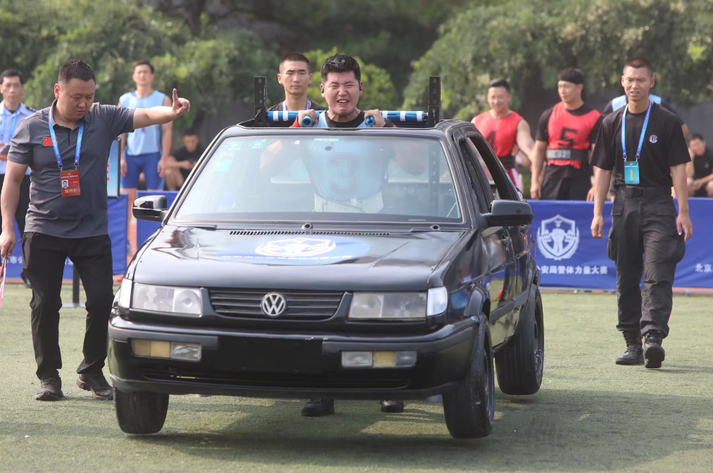 借用改装的专用扛架,民警在30秒内用肩膀将扛起重300公斤的车辆向前行走29米;180公斤的轮胎两分钟之内最多翻动34次;通过专用钢架将车辆后轮提拉21次;身负牵引绳,不到19秒就将自重4吨的15座警车拖行30米……警界大力士们创造了一个又一个亮眼的成绩。