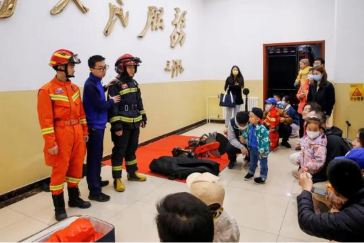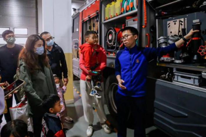 讲解完消防知识后,宁波银行工作人员邀请孩子和家长进行消防队员内务参观,让孩子养成良好的生活习惯。接着,消防队员进行消防器具使用方法展示,并带领小朋友们参观消防救援车,讲解灭火器使用方法、火场逃生技巧,最后运用所学知识举办逃生模拟演练。