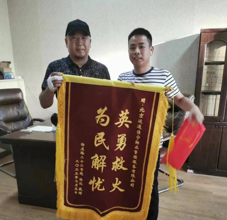 “如果当时火没有被及时扑灭,后果不堪设想,非常感谢邻居的及时通知和物业工作人员英勇救火。”居民陆先生与家人很感动,第二天专程将一面写有“英勇救火为民解忧”的锦旗送到物业。