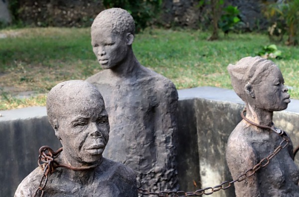 这是2月23日在坦桑尼亚桑给巴尔拍摄的奴隶雕塑。图源:新华社