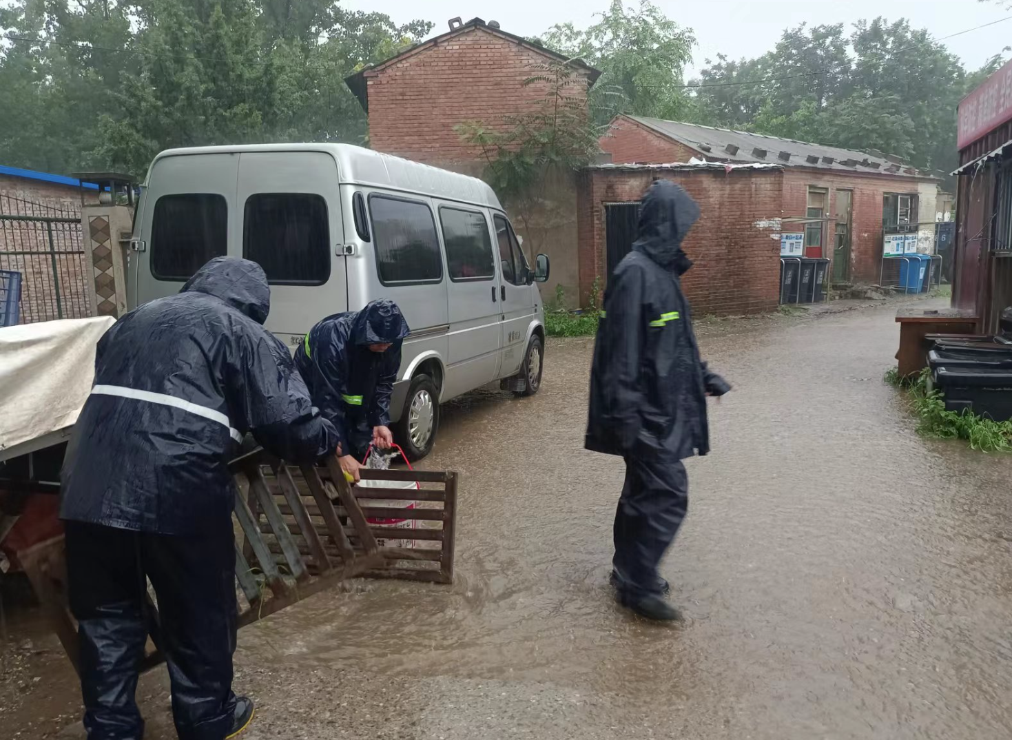 7月30日上午,连夜的降雨还未停歇,门头沟区何各庄平房区物业项目部的25名员工已经奋战了一整夜,仍然冒雨在各个小区反复巡视,丝毫不敢掉以轻心。另一边,整装待发的抢险队也在随时待命,一旦发生险情将会以最快的时间赶到居民家中,保护居民的人身财产安全。