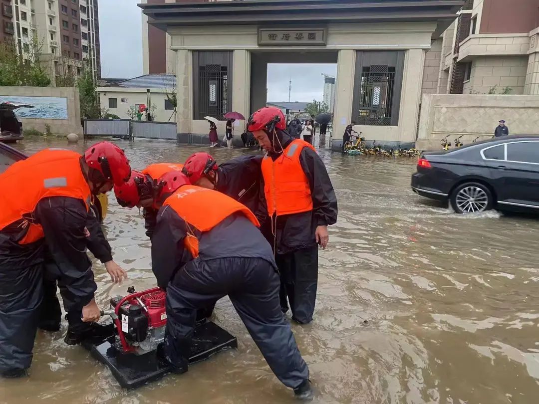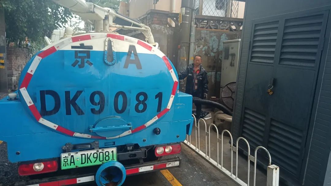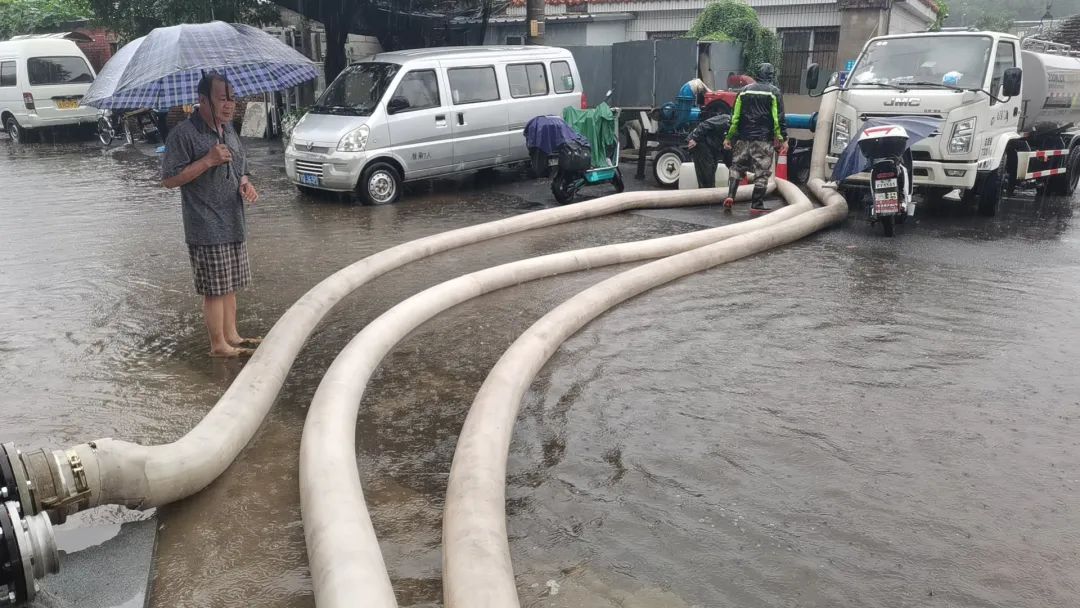 ▲老山街道对辖区积水点位排水作业,同时持续关注雨情