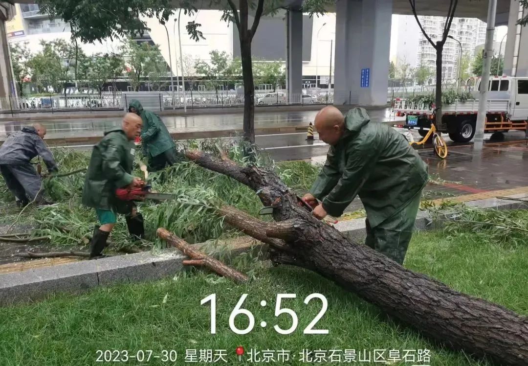 森防救援支队80名应急抢险队员、 消防支队所属14个消防站、215名指战员、 红十字蓝天救援队27人、民兵534人全部进入战备状态,遇突发情况随时出动。 区交通支队部署岗位65处,警力85人,做好易积水点段值守和社会面交通维护疏导工作。截至7月30日17:00,三山园社区、鲁谷南路、八角北路等地出现的8处树木倒伏,均已处置完毕。