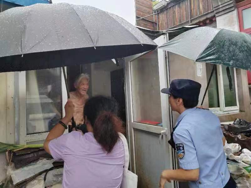 工作人员对香饵胡同104号的老人进行入户走访,并询问其房屋及身体情况