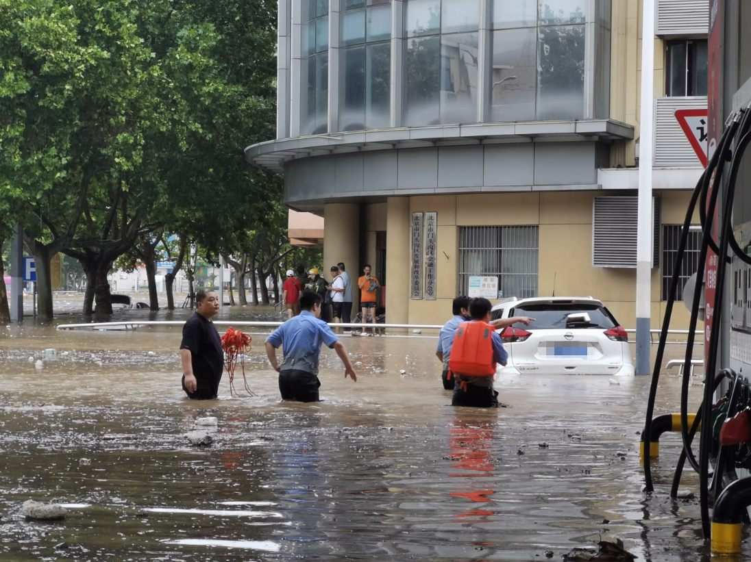 7月31日中午,门头沟区的大雨导致部分路段水位迅速上涨。刚刚处理完一件群众求助警情,民警李龙的鞋子全部湿透。返回所在的门头沟公安分局月季园派出所,李龙刚换上拖鞋,便听到值班室里所长焦急的呼叫,“不好了,新桥南大街涨水了!快走!”见同事们都往外跑,李龙全然忘记自己脚上穿的是拖鞋,便跟着同事们飞奔了出去。